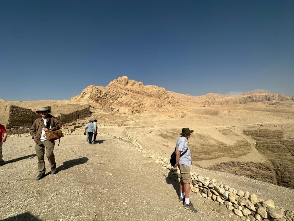 In her lecture The Life of Tomb Builders at Deir el-Medina Hazel McGuinness, secretary of the Horus Egyptology Society in Wigan, told us that the largest of these, Deir el-Medina, was built for tomb builders who created the tombs in the Valley of the Kings. As well as the village itself there are tombs that the workmen created for each other, and a large rubbish pit which contains household goods and small sketches and notes written on shards of broken pottery known as ostraca.